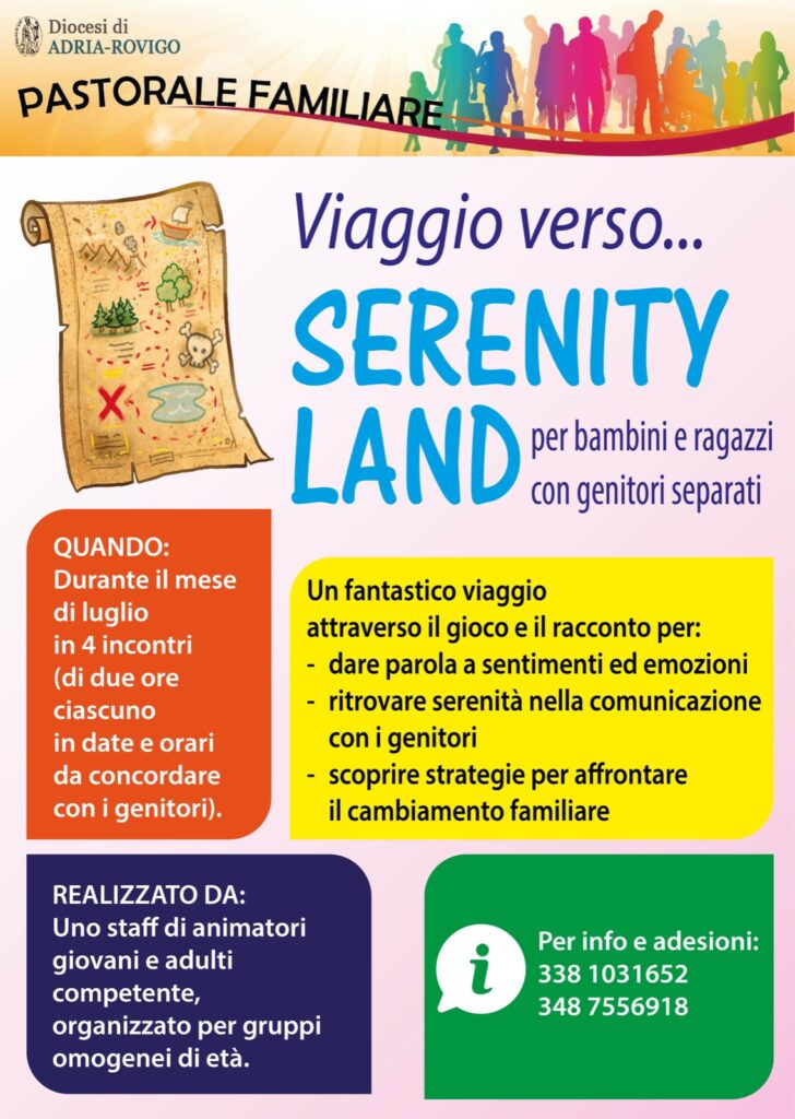 Per questo abbiamo pensato, nel mese di luglio, ad un “Viaggio verso… Serenity Land”: sarà un fantastico viaggio attraverso il gioco, la fiaba e il racconto per aiutare i bambini e i ragazzi a vivere con maggior consapevolezza questo momento delicato della loro vita, innanzitutto trovando parole per poter esprimere liberamente i sentimenti e le emozioni che stanno vivendo. Tante infatti sono le emozioni che si intrecciano in loro. La maggior parte dei bambini ha paura di quello che succederà, di come cambierà la loro vita. Molti temono di essere abbandonati, di non essere mai più felici. Alcuni esprimono il dolore per la rottura familiare con sentimenti di rabbia e comportamenti aggressivi. Si sentono poi il malessere nel corpo e avvertono un senso di confusione nella mente. Tante volte poi i figli provano un senso di colpa per la separazione perché credono di essere responsabili dei litigi e dell’insoddisfazione dei genitori. Tutte queste emozioni vanno riconosciute, accolte, rispettate, con delicatezza e comprensione.